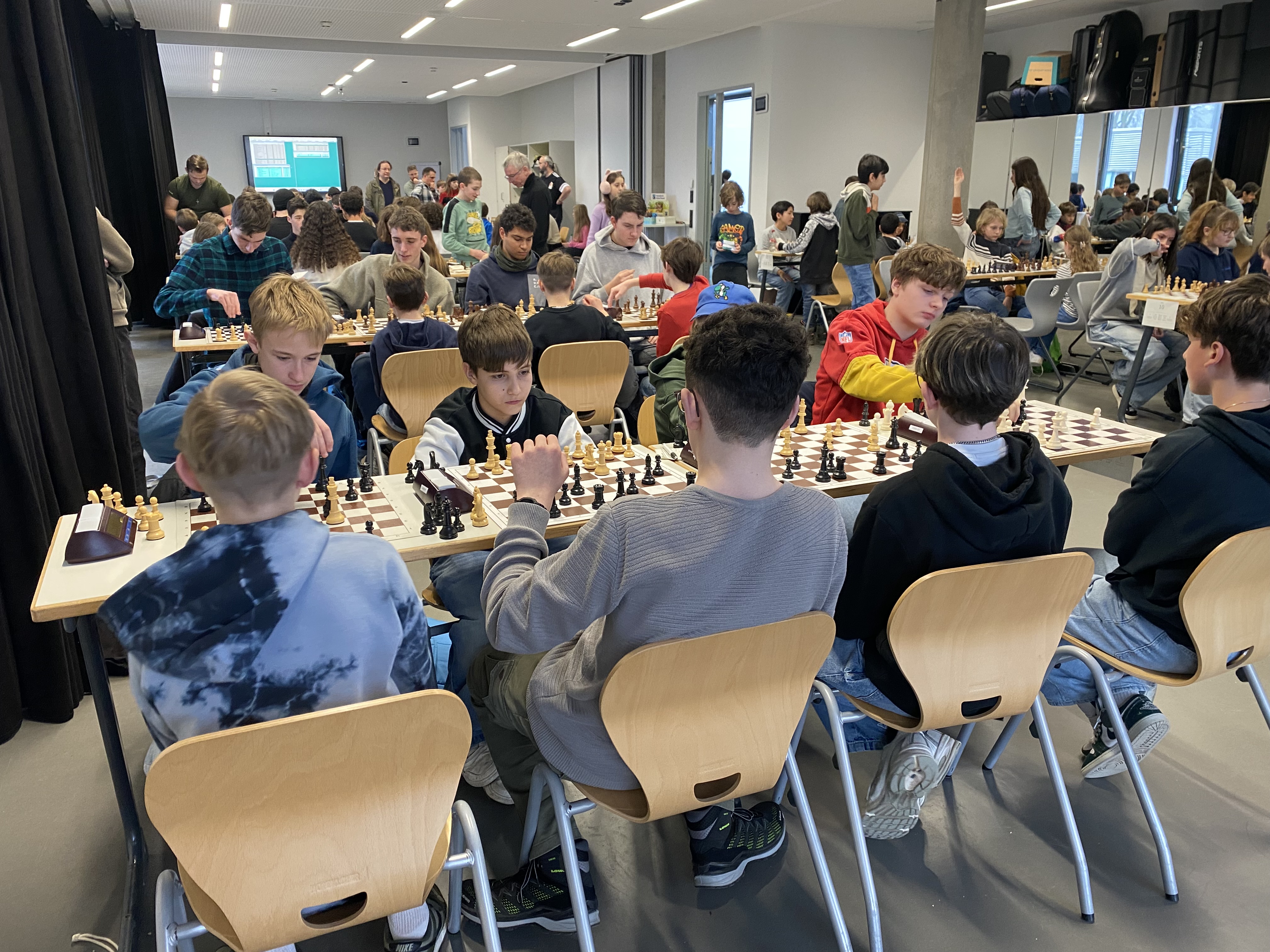 Am 30. Januar 2026 nahm das LMG zum vierten Mal an der ersten Runde der badischen Schulschachmeisterschaften teil. In gleich vier Altersgruppen konnten 5 Vierermannschaften gestellt werden. Erfreulicherweise waren viele Spieler aus Klasse 5 am Start, sodass die Zielsetzung vor allem im Sammeln von Erfahrungen bestand. Gespielt wurde in einem mehrrundigen Gesamtturnier mit nach Wettkampfklasse getrennter Wertung. Am Ende erwies sich die Gegnerschaft in den unteren Wettkampfklassen als noch zu stark. Zudem hatten wir auch noch mit einem kurzfristigen Ausfall durch Krankheit zu kämpfen. So konnte sich nur ein Team aus Jahrgangsstufenschülern für die nächste Runde qualifizieren (siehe Bild). Glückwunsch!